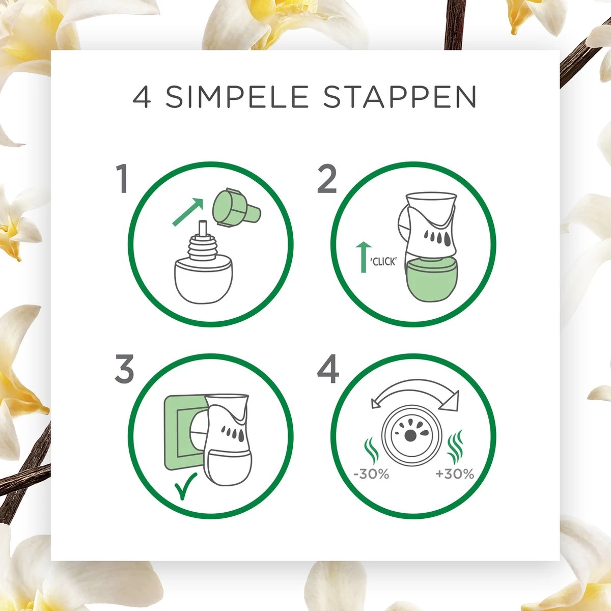 De Air Wick Elektrische Luchtverfrisser Vanille & Orchidee verpreidt een heerlijk aroma tot in elke hoek van je kamer.