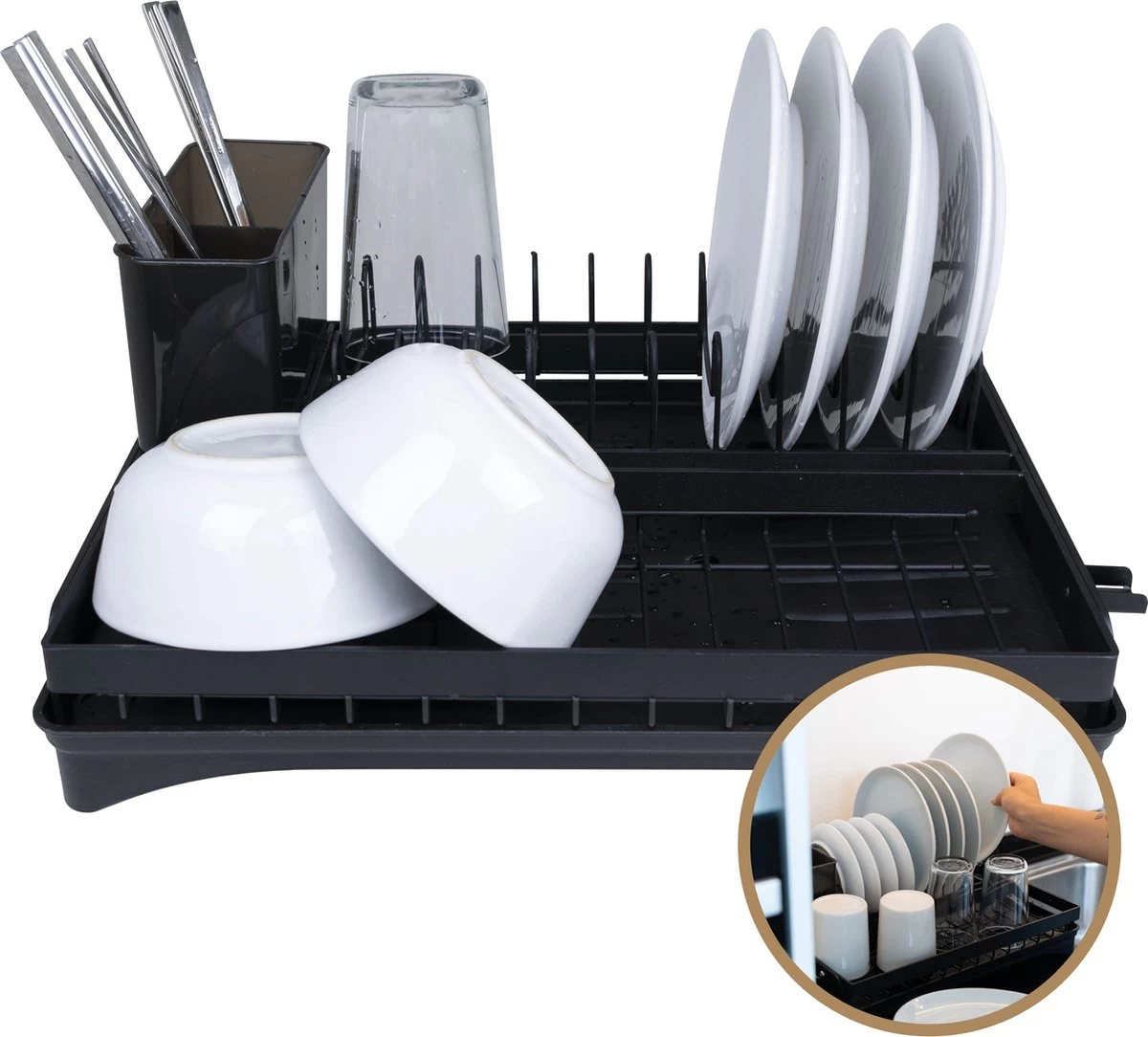 Ben jij iemand die regelmatig de afwas doet? Met ons droogrekje maak je deze taak eens zo gemakkelijk! Vanaf nu is het gedaan met het vallende servies dat je probeert op te stapelen. Je servies zal beter en sneller drogen! Nu met een bijhorende lekbak die het water opvangt.