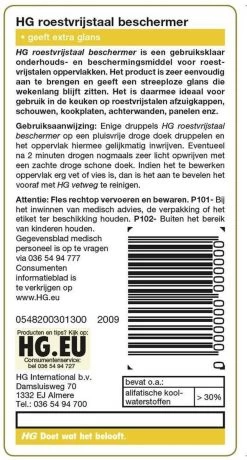 HG Roestvrijstaal Reiniger – 300ml – Onzichtbare Beschermlaag – Reinigt Snel En Streeploos