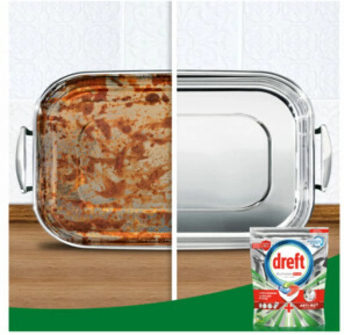 De beste tabletten voor het reinigen van moeilijke etenswaren van Dreft maken je vaat weer als nieuw schoon