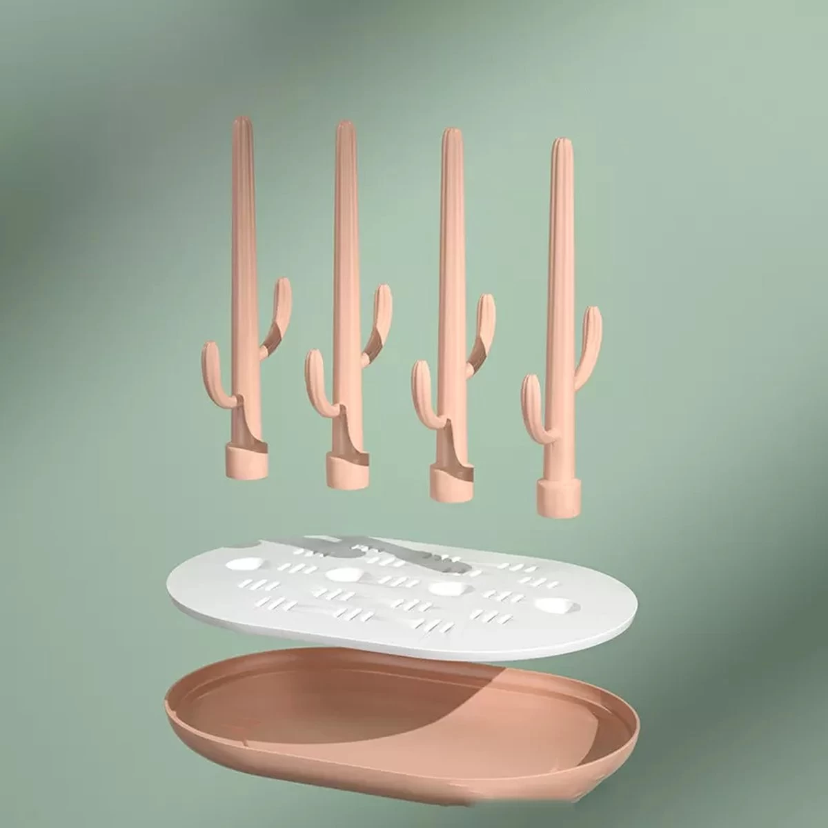Op het droogrek passen ongeveer acht flessen en alle bijbehorende accessoires en spenen. In het droogrek zit een ingebouwd reservoir die al het vocht opvangt en voorkomt dat het aanrecht nat wordt. Na gebruik kan je het rek weer eenvoudig invouwen en opbergen.