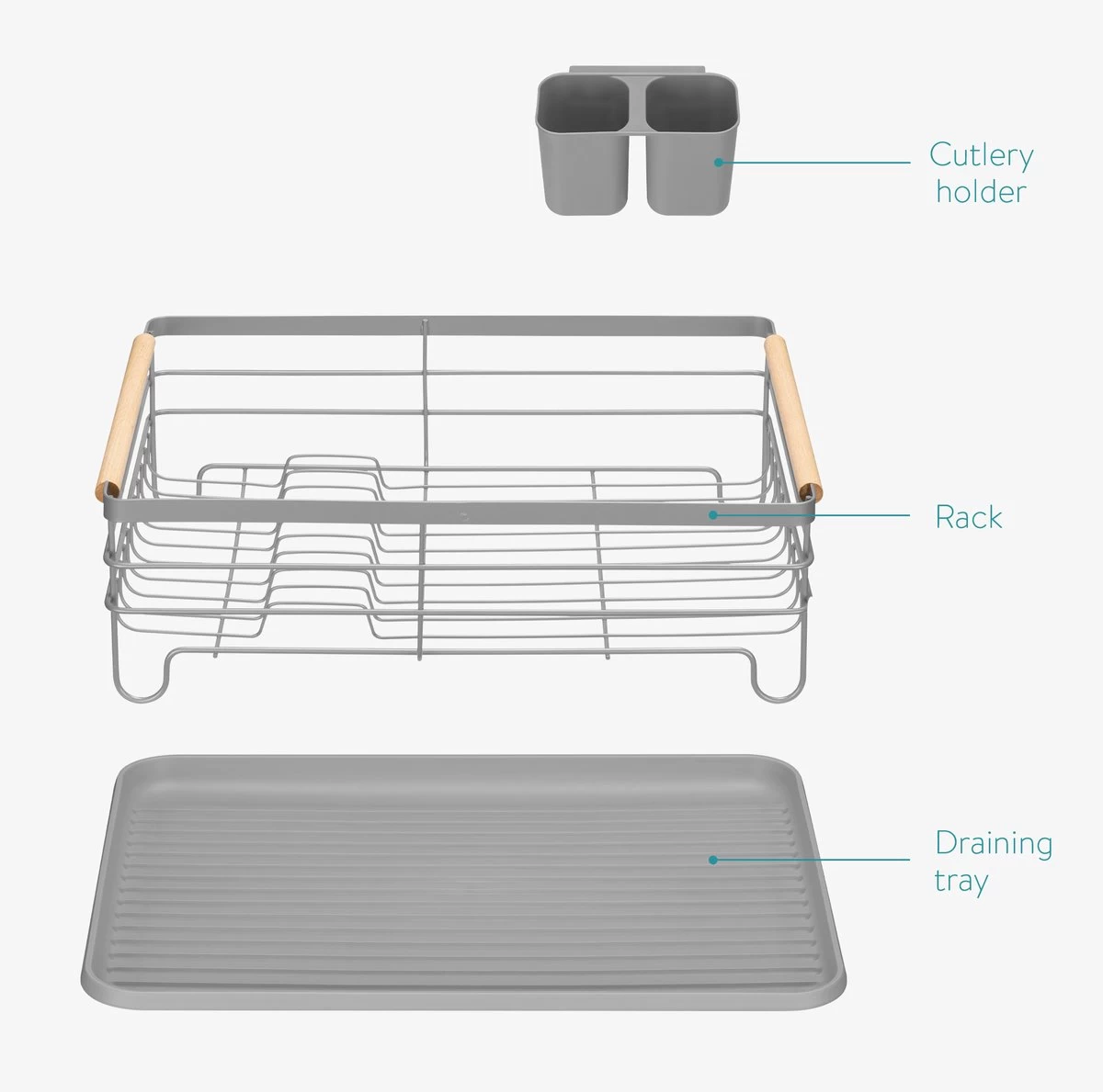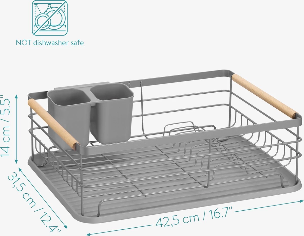 Navaris Afdruiprek Met Uitneembare Bestekhouder – Afwasrek Met Losse Lekbak – Vaatwasrek Met Plateau – Voor Bestek, Borden, Schalen En Pannen