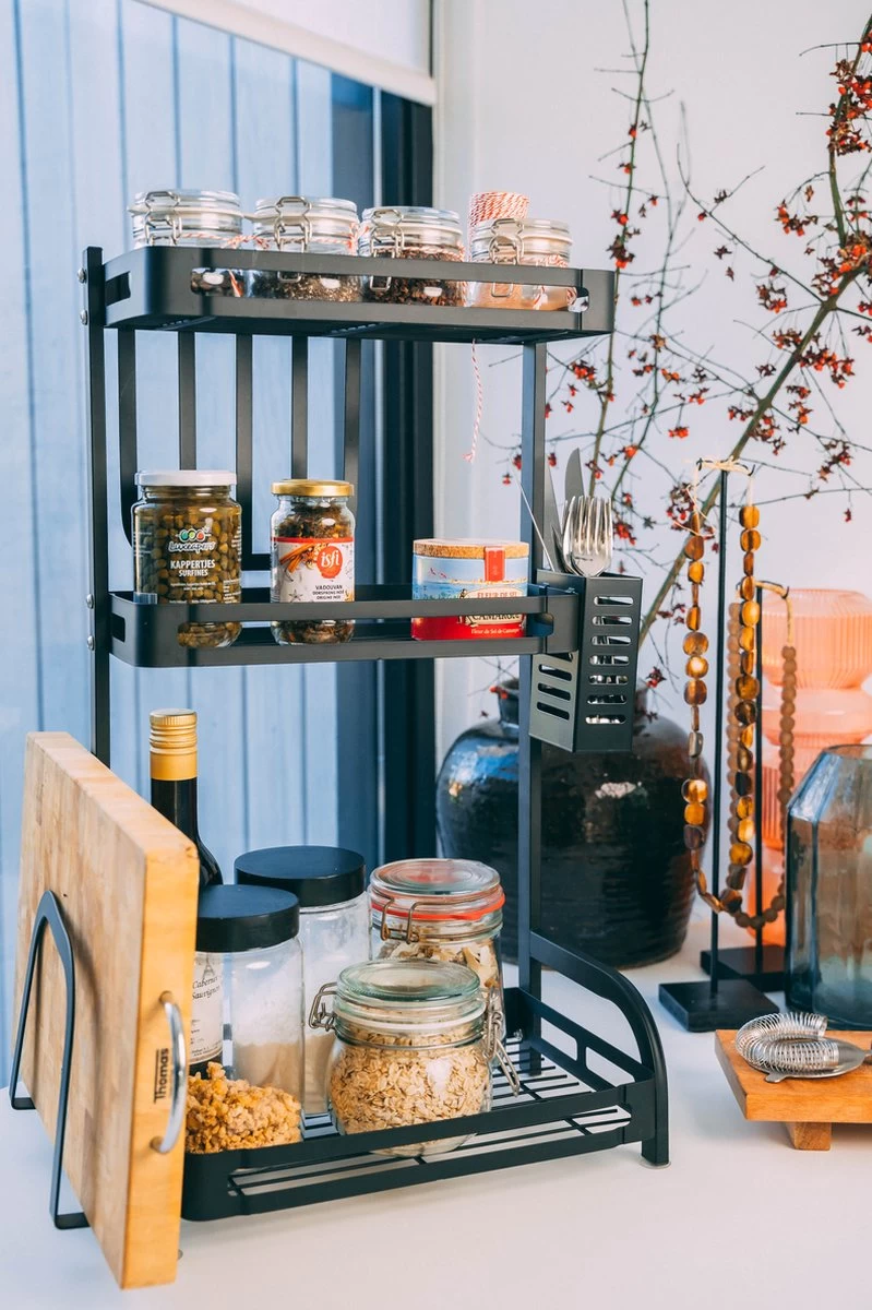 Het kruidenrek is een absolute blikvanger. Het keukenrek heeft drie etages en voldoende ruimte om een groot aantal kruidenpotjes op te slaan. Daarnaast is het keukenrek ook ontzettend praktisch, doordat het kruidenrek water- en vuilafstotend is. Olie of kruidenresten worden makkelijk verwijderd met een vochtig doekje. Hou je keuken opgeruimd en bestel vandaag nog dit staande design keukenrek!